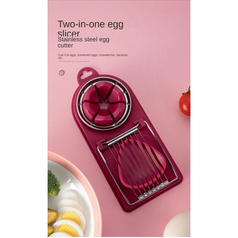 Nome: tagliauova a doppio uso Materiale: acciaio inossidabile + PP Dimensioni: la seguente tabella di misurazione Colore: rosso, bianco Usi: affettare uova, tritare e tagliare altri frutti