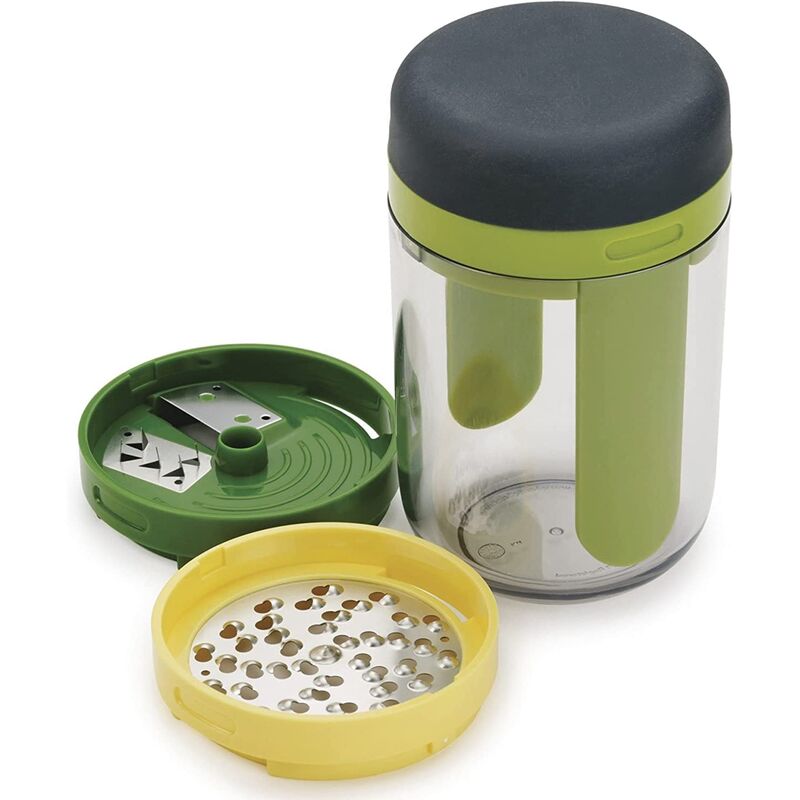 Multifunzione: tagliare verdure e frutta in spaghetti uniformi + una grattugia per formaggio Compatto: tre grattugie in un unico utensile salvaspazio Facile da usare: frutta e verdura da tagliare rimangono in asse durante il taglio Intelligente: un contenitore raccoglie ciò che hai appena tagliato Stabile: manico in silicone soft touch