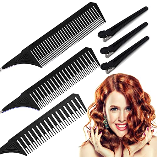 3 Taglie Pettine a Coda Pettine Capelli, Pettine Professionale Antistatico per Parrucchieri Include 3 Clip, Pettine per Meches, Pettine con Manico Dell'ago, Unisex
