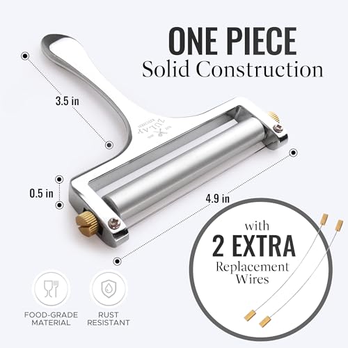 Tagliere per Formaggio Zulay con Spessore Regolabile - Affettatrice a Filo per Mozzarella, Cheddar, Gouda - Affettatrice per Formaggio a Blocchi Robusta con 2 Fili Extra (Argento)