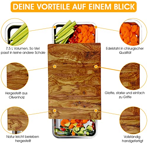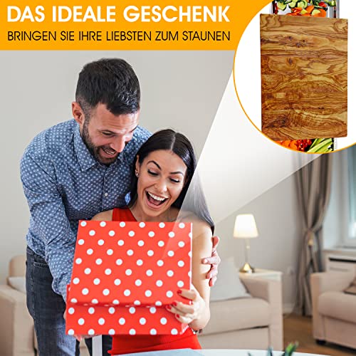 Tagliere in legno d'ulivo, tagliere in legno d'ulivo, tagliere in legno, tagliere per la colazione, tagliere in legno d'ulivo, rustico (con vassoi di raccolta, XL)