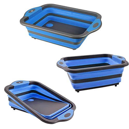 Multifunzione 4 in 1: non solo un tagliere per tagliare, tritare e tagliare, una vaschetta pieghevole per lavare, un filtro di scarico per drenare l'acqua e per pulire, ma anche un cestino per riporre tutti i tipi di verdure. frutta, stoviglie o bevande glassate, ecc.