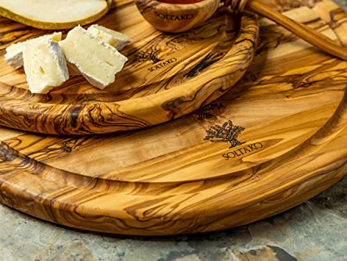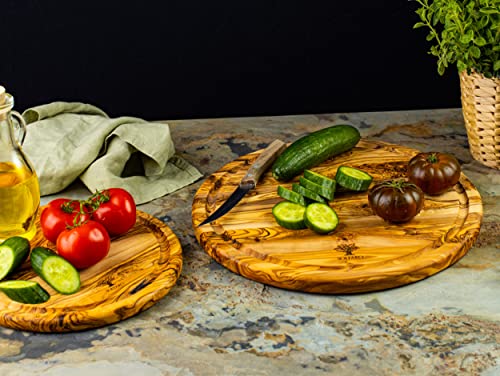 Tagliere rotondo in legno d'ulivo Rustico - Tagliere da Cucina per Formaggi Rustici - Mini Tagliere Professionale - Tagliere per Salumi, Aperitivo, Carne, Verdure (25cm)