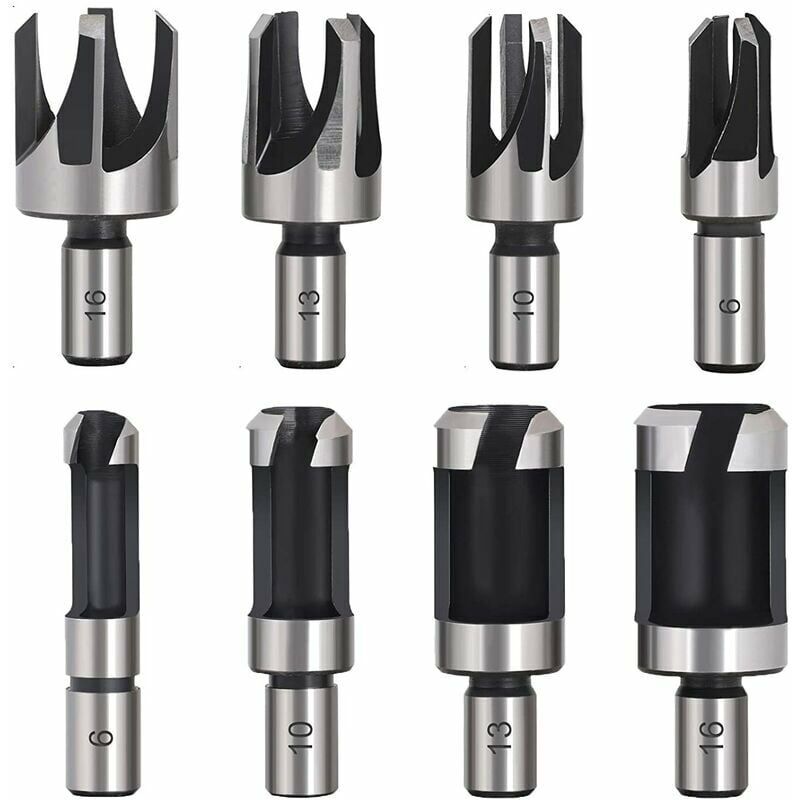 Il pacchetto include: 4 frese standard e 4 svasatori svasatori a 4 scanalature Gli svasatori svasatori creano tappi conici per riempire i fori svasati. Le dimensioni del diametro includono 6 mm/10 mm/13 mm/16 mm (1/4, 3/8, 1/2, 8/5) Facile e sicuro da usare e conservare. Materiale: acciaio al carbonio, rivestimento in titanio, resistente e di alta precisione. Ridurre la resistenza alla perforazione, ridurre il calore, un po' più durevole. Caratteristiche: 100% nuovissimo e di alta qualità Set di taglierine per tappi. Ideale per il fai-da-te, la casa e l'edilizia generale, l'ingegneria. Questo set include 4 frese standard e 4 frese per smusso a quattro scanalature. Gli svasatori svasatori creano tappi conici per riempire i fori svasati Le frese svasate da 8 pezzi rendono i tappi perfetti per i fori annoiati. Il set Cutter Raggiunge una finitura eccellente utilizzando lo stesso legno. Usi: adatto per foratura da banco e trapano a mano;