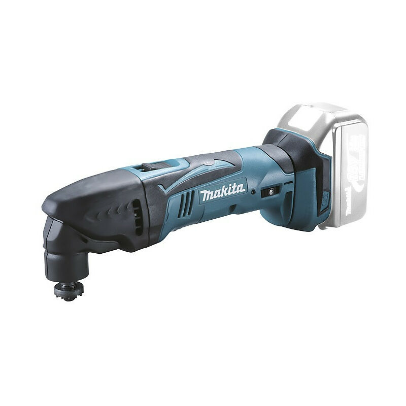 Makita - Taglierina levigatrice multiuso 18V Li-Ion (senza batterie) - DTM50Z Attenzione Consegnato senza batterie e caricabatterie - Il Makita BTM50Z è un utensile multifunzionale che può essere vestito in alto o in basso come richiesto - Offre alte prestazioni e la sua velocità di oscillazione va da 6000 a 20000 rpm - Questa velocità di oscillazione è selezionabile elettronicamente tramite una rotella di regolazione - L'unità permette il collegamento di un dispositivo esterno di estrazione della polvere per lavori a bassa emissione di polvere - 12 impostazioni di angoli accessori, ogni 30°, in una gamma di 0-360° permettono di utilizzare l'unità in una vasta gamma di applicazioni - Il BTM50Z ha un avviamento morbido e un controllo costante della velocità, assicurando un'applicazione accurata dell'utensile al pezzo da lavorare - Quando è equipaggiato con gli accessori appropriati, l'utensile può fare scanalature nel legno, tagliare elementi in ceramica, tagliare bordi e angoli