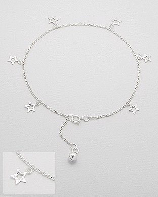 È possibile scegliere tra un'ampia gamma di cavigliere in argento: con ciondolo a margherita, a cuore, con perle o sfere, con stelle fiori, con zirconi cubici e tanti altri tipi di cavigliere. Ciascun articolo viene elegantemente presentato e consegnato in confezione o sacchetto regalo.