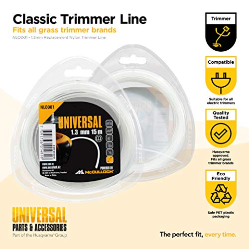 Filo di Taglio Universal Nlo001: Filo di Ricambio per Tagliabordi, Lunghezza 15 M, Ø Filo 1,3 Mm, Nylon Resistente Allo Strappo, Accessorio Originale Mcculloch (Cod. Art. 00057-76.163.01)