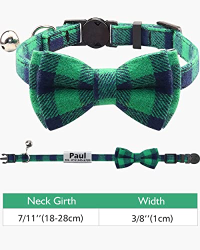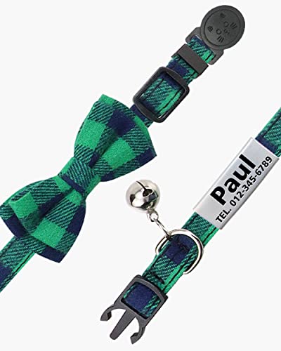 TagME Collare per Gatti Personalizzato, con Papillon e Targhetta Identificativa Collari per Gatto,Verde