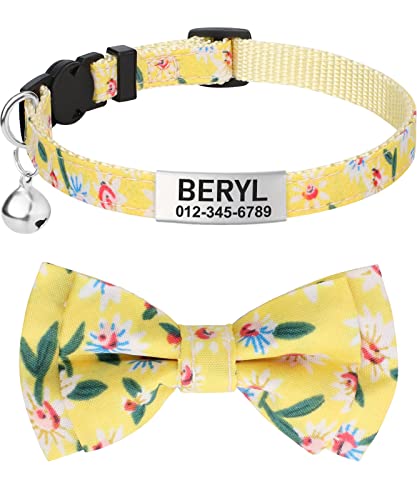 TagME Collare per Gatti Personalizzato, con Papillon e Targhetta Identificativa Collari per Gatto,Fiore Giallo