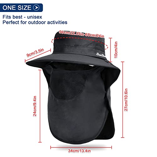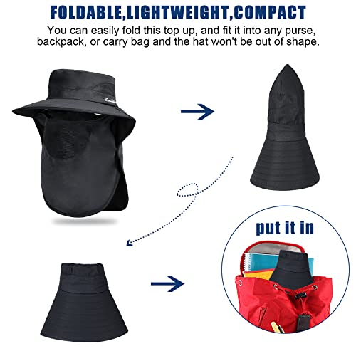 TAGVO Cappello da Sole a Tesa Larga da Uomo Donna con Copricollo, Estivo Anti UV Cappello alla Pescatora, Cappelli da Escursionismo Pieghevoli per Campeggio Escursionistica Spiaggia 56-60cm