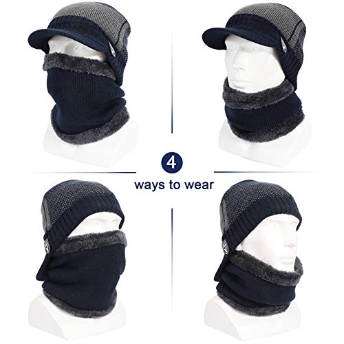 TAGVO 3in1 Inverno Berretto Scaldacollo Guanti Set, Fodera Interna in Pile Elastico Warm Knit Beanie cap Scaldacollo Guanti Touchscreen, Ciclismo in Esecuzione,Coordinati Invernali da Uomo Donna