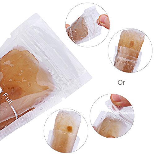 FORMATO: lunghezza da 1,7 pollici x 8 pollici per il sacchetto di pop-up congelatore e ogni sacchetto contiene 3,5 once fluidi, 6,5 "(alto) * 1,7" (opeaning) per le maniche pop con un po 'di un tratto.