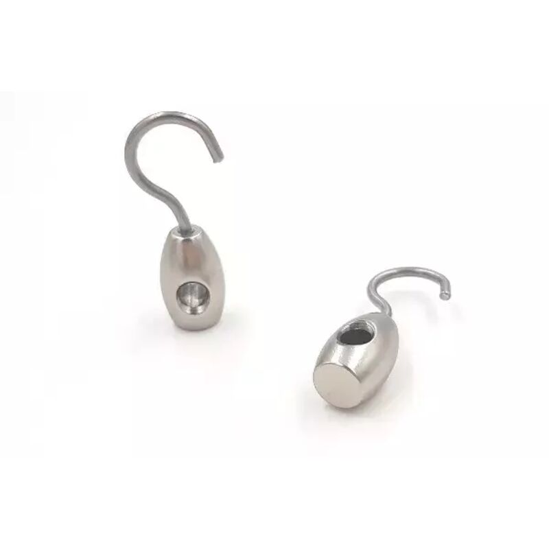 Gancio multiuso in ottone nichel-satinato per barra d.4 mm. L'abbinamento di un pezzo di barra inox d.4 (BA042509)e di 2 supporti MB455C da vita a moderni portachiavi, porta-accessori da cucina,ecc.