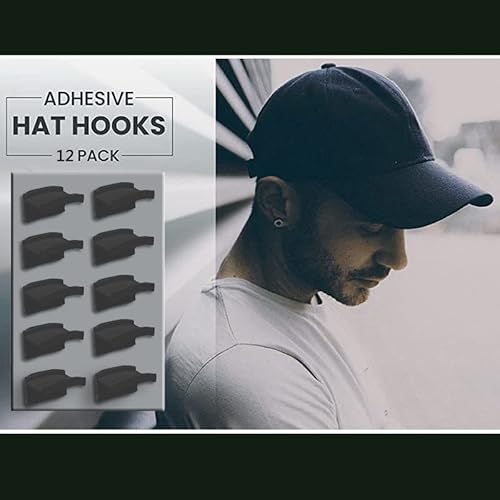 Durevole - 12 pezzi di supporto per cappelli in denim da parete utilizza adesivo ispessito e può resistere a 6 libbre (altre marche possono sopportare solo 3 libbre). Nota: Usiamo adesivi forti per garantire che il gancio del cappello rimanga in posizione per molto tempo. Pertanto, installare il gancio su una superficie liscia che non si strapperà.