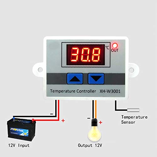 Taikuwu XH-W3001 Modulo di controllo della temperatura digitale LED con sensore impermeabile, termostato di raffreddamento programmabile (12 V 10 A 120 W)