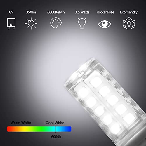 Tailcas G9 LED Lampadina 3.5W Fredda, Equivalenti 30W 40W Lampada Alogena, Bianco Freddo 6000K, 350LM Lampadime G9, AC220-240V, Non Dimmerabile, Nessun Sfarfallio Risparmio Energetico Lampade,6 pezzi