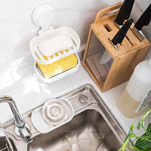 TAILI Doppio strato Portasapone a Ventosa, Supporto per Sapone a Ventosa con Installazione in un Secondo, Forte Supporto per Spugna per Doccia, Bagno, senza Trapano, Rimovibile