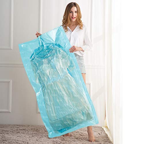 TAILI Sacchetti Salvaspazio, Sacchetti Sottovuoto Riutilizzabili Gancio Esterno da Appendere Confezione 4 (2*Lungo(135x70cm)+2*Piccolo(105x70cm)) Sacchetti per Completi, Cappotti, Vestiti - Blu