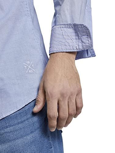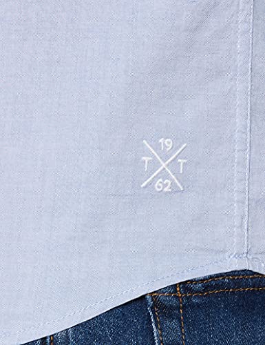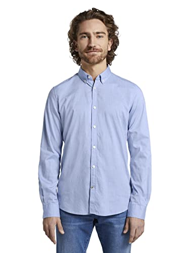 TOM TAILOR Camicia Slim Fit in Cotone, Uomo, Blu (Light Blue Oxford 15837), M