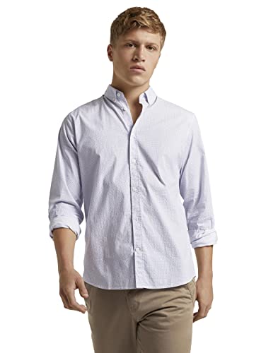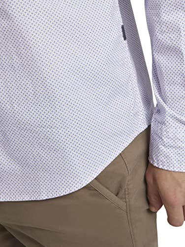 TOM TAILOR Camicia Elasticizzata con Motivo, Uomo, Bianco (White Blue Crosses Design 24487), M