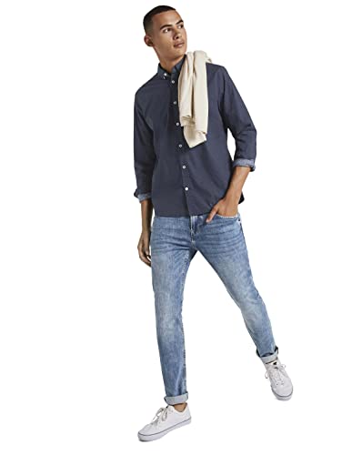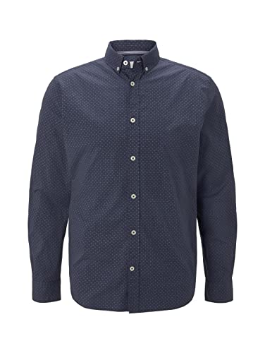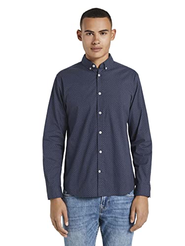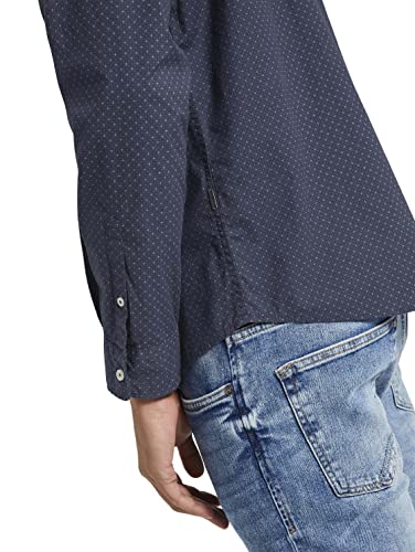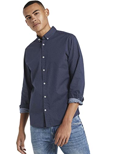 TOM TAILOR Camicia Elasticizzata con Motivo, Uomo, Blu (Navy Blue Crosses Design 24486), M