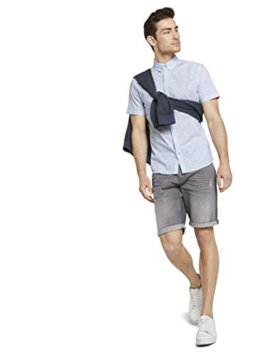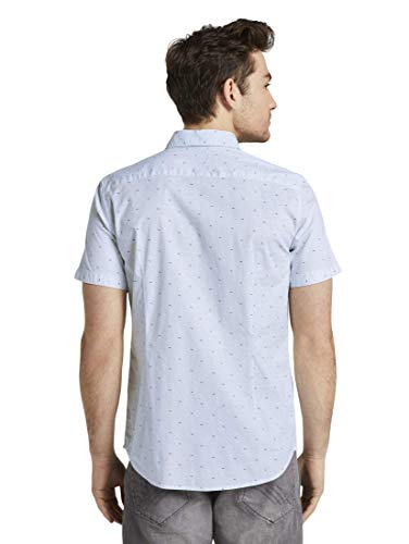 TOM TAILOR Camicia a Maniche Corte a Fantasia, Uomo, Arancione (Light Blue Navy Grid Design 21669), L