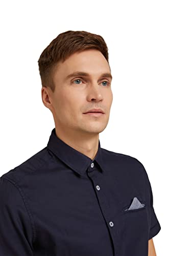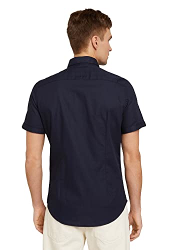 TOM TAILOR Camicia a Maniche Corte con Struttura, Uomo, Blu (Sky Captain Blue 10668), L
