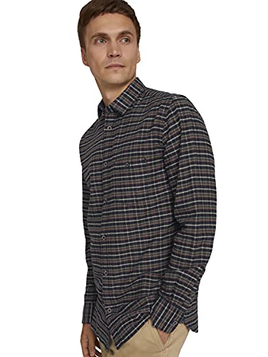 TOM TAILOR Camicia a Quadretti, Uomo, Multicolore (Olive Base Blue Check 27525), M