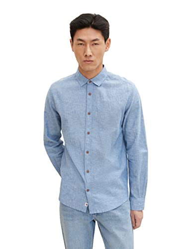TOM TAILOR Camicia Regular Fit in Lino, Uomo, Blu (Helsinki Night Blue Chambray 26507), XS