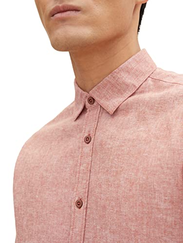 TOM TAILOR Camicia Regular Fit in Lino, Uomo, Marrone (Acorn Brown Chambray 29062), L