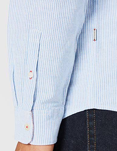 TOM TAILOR Camicia a Righe, Uomo, Blu (Bright Ibiza Blue White Stripe 25866), XL