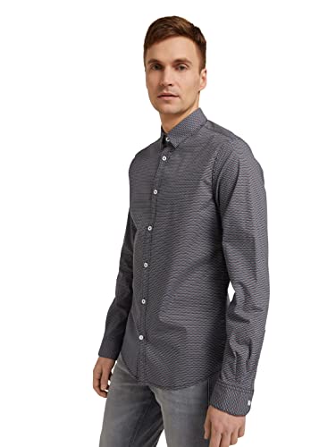 TOM TAILOR Camicia con Stampa, Uomo, Rosso (Navy Red Minimal Wave Design 29027), S