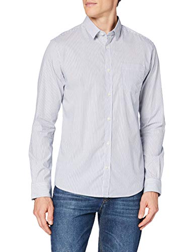 TOM TAILOR Camicia Slim Stretch Fantasia, Uomo, Blu (White Blue Stripe 24462), L