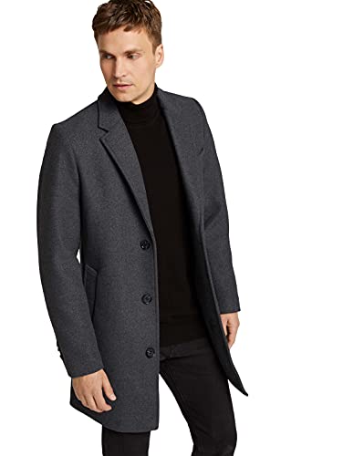 TOM TAILOR Cappotto di Lana, Uomo, Grigio (Mid Grey Wool Structure 19081), L