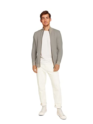 TOM TAILOR Cardigan con Collo Alto, Uomo, Bianco (White Grey Knit Structure 28635), XXL