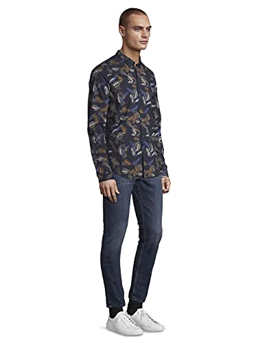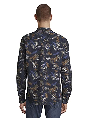 TOM TAILOR Denim Camicia a Fantasia, Uomo, Blu (Navy Multicolor Leaves Print 28171), XL