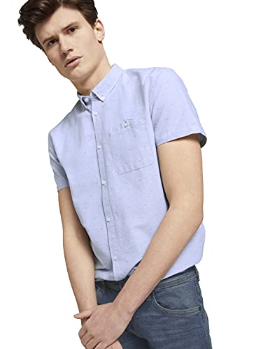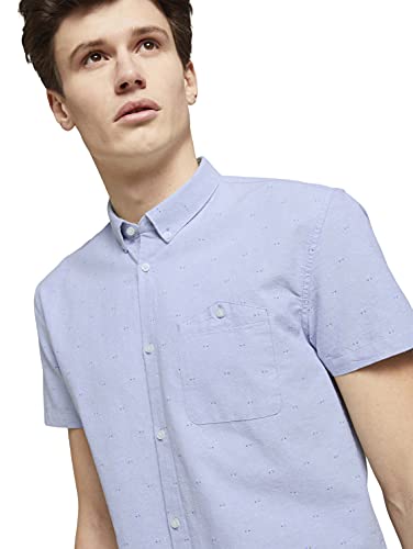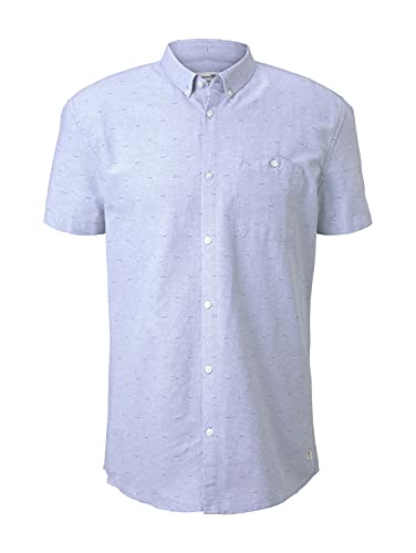 TOM TAILOR Denim Camicia a Fantasia, Uomo, Blu (Blue Dot Triangle Print 26964), L