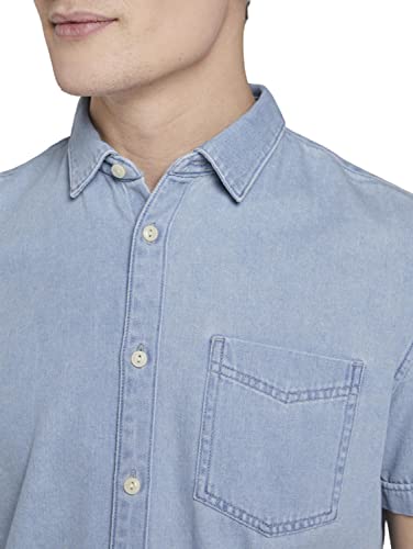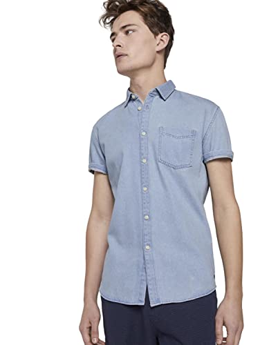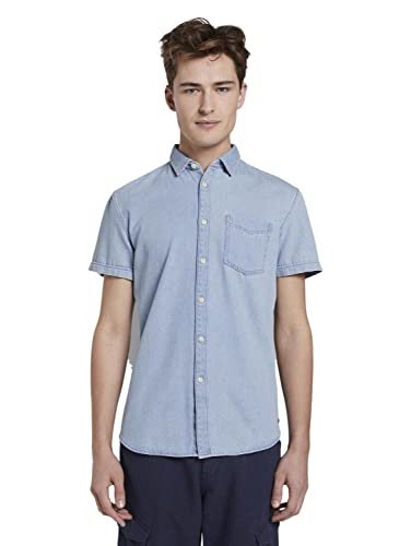 TOM TAILOR Denim Camicia a Maniche Corte in Jeans, Uomo, Blu (Bleached Blue Denim 10139), S