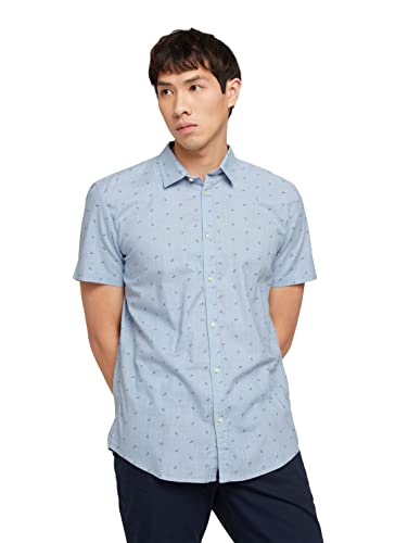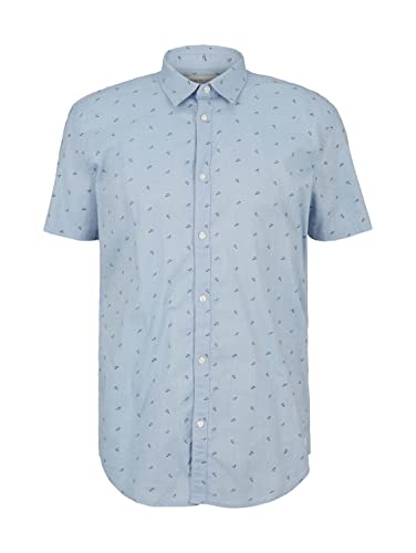 TOM TAILOR Denim Camicia a Maniche Corte con Stampa, Uomo, Blu (Blue Paper Plane Print 29182), XS