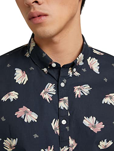TOM TAILOR Denim Camicia con Stampa, Uomo, Blu (Navy Flowery Print 29445), XS