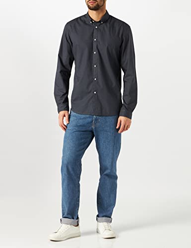 TOM TAILOR Denim Camicia Tinta Unita in Cotone, Uomo, Blu (Dark Triangle Structure Print 28628), S