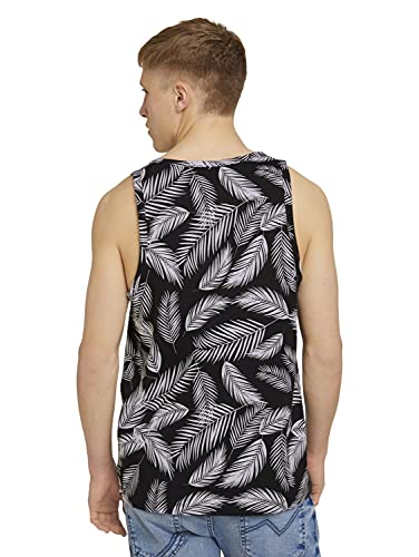 TOM TAILOR Denim Canotta con Stampa di Palme, Uomo, Nero (Black White Palm Leaves Print 26968), M