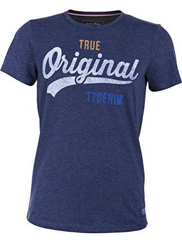 TOM TAILOR Denim Crew with Chest Print T-Shirt, Blu (Black Iris Blue 6740), Medium Uomo