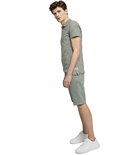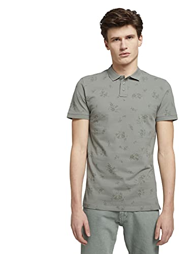 TOM TAILOR Denim Polo Fantasia, Uomo, Verde (Olive Shredded Flower Print 26975), L