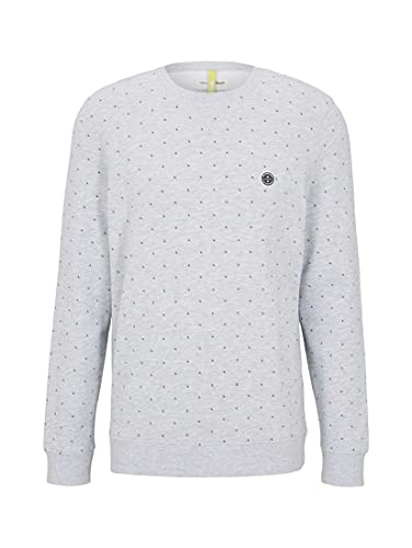 TOM TAILOR Denim Felpa Fantasia, Uomo, Grigio (Grey Triangle Stripe Print 25511), XL