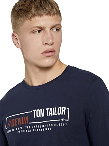 TOM TAILOR Denim Maglia a Maniche Lunghe in Cotone Biologico, Uomo, Blu (Sky Captain Blue 10668), XL