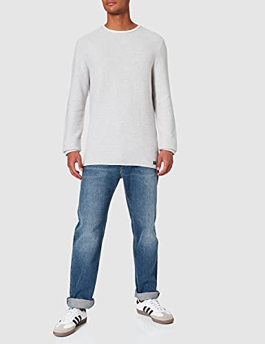 TOM TAILOR Denim Maglia a Maniche Lunghe in Cotone Biologico, Uomo, Grigio (Light Stone Grey Melange 15398), M