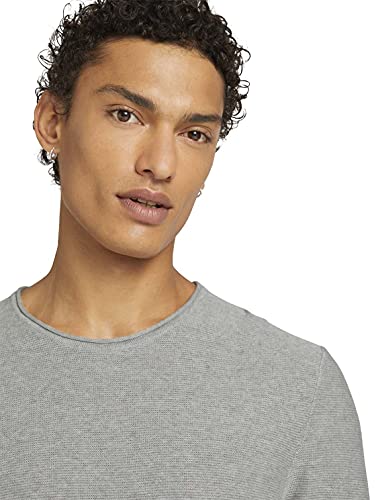 TOM TAILOR Denim Maglietta Basic a Maniche Lunghe in Cotone Biologico, Uomo, Grigio (Lava Stone Grey Melange 22453), S