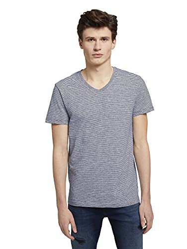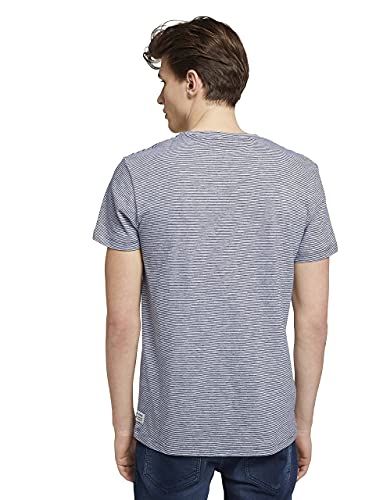 TOM TAILOR Denim Maglietta Basic a Righe, Uomo, Blu (Navy White Yd Melange Stripe 27147), M