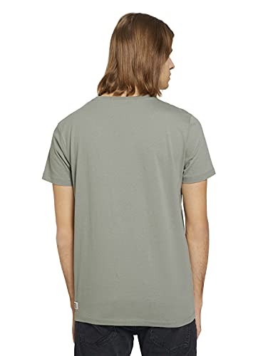 TOM TAILOR Denim Maglietta in Cotone Biologico, Uomo, Verde (Greyish Shadow Olive 10767), XS